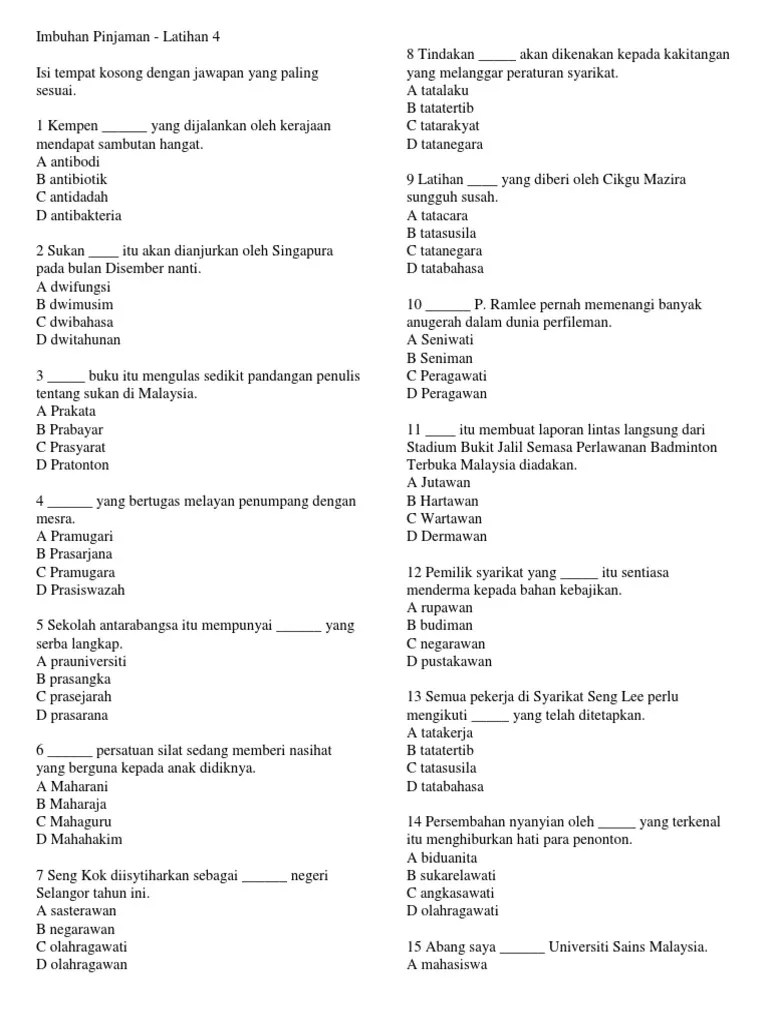 Latihan Imbuhan Pinjaman Tahun 5 - Latihan Imbuhan Pinjaman Worksheet. Dibatalkan dan diganti dengan spanm bil. Tun mahathir mohamad siti hasmah mohamad ali sumber kekayaan : Sudah saya duga abu akan datang awal ke sekolah. Koleksi soalan peperiksaan, percubaan, ujian, kbat, nota, latihan, modul, jawapan. Sebuah jambatan yang teguh akan dibina merentangi sungai yang lebar itu. Adakah pegawai yang meninggal dunia pada 1 januari 2020 layak diberi pergerakan gaji tahunan bagi tahun 2020?